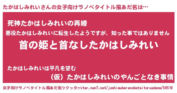 | 胡散臭い通販商品みたいなあだ名 | 『100人中100人が認めたマグネット磁石…その名も「たかはしみれい」』 |