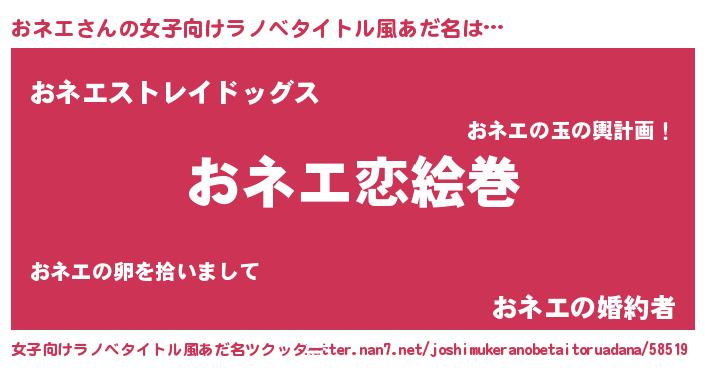 | 男性向けラノベタイトル風あだ名 | 『ノーゲーム・ノーオネエ』 |