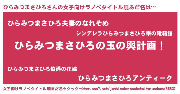 | ヒーロー風カッコイイあだ名 | 『慈愛の使者ひらみつまさひろ』 |