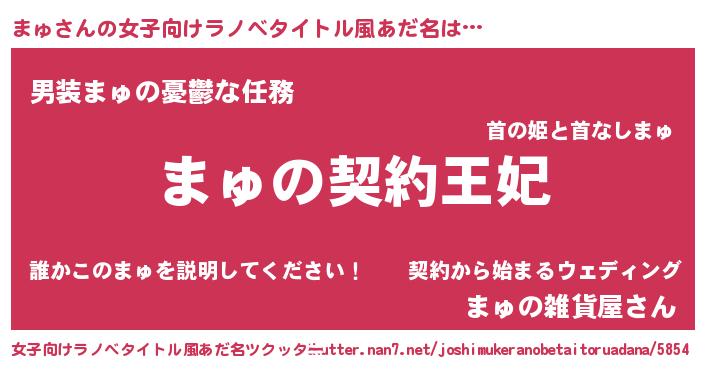 | 男性向けラノベタイトル風あだ名 | 『まゅという概念が存在しない退屈な世界 』 |