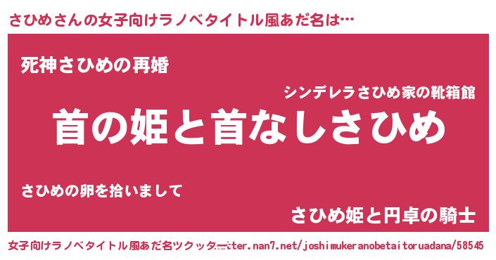 | 男性向けラノベタイトル風あだ名 | 『はたらくさひめさま!』『緋弾のサヒメ』 |