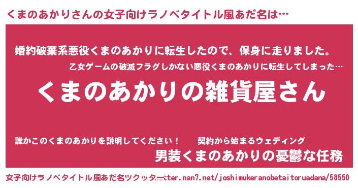 | ファンタジー風あだ名 | 『エターナルクマノアカリー』 |