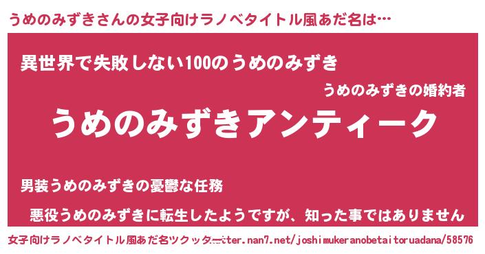 | 意味不明あだ名 | 『自称うめのみずき』 |
