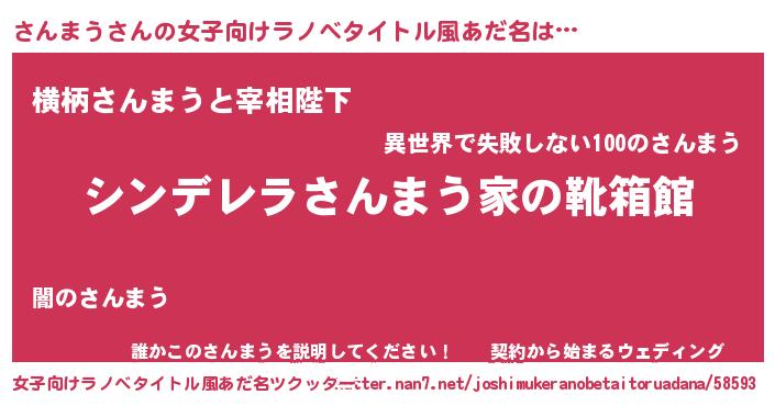 | 胡散臭い通販商品みたいなあだ名 | 『必ず成功するブレスレット…その名も「さんまう」』 |