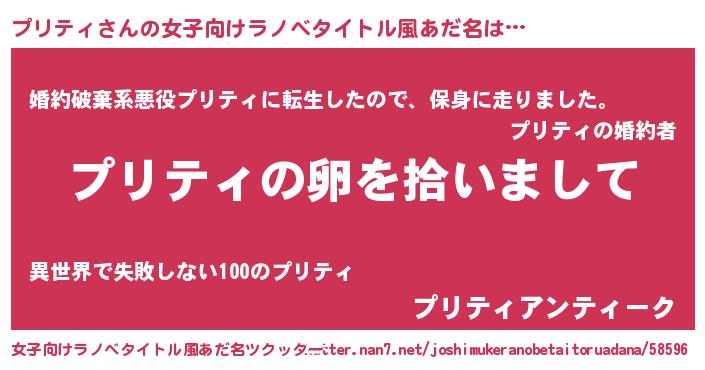 | ヒーロー風カッコイイあだ名 | 『幻影騎士プリ』『ウルトラ戦士プリティ』 |