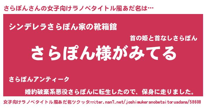 | 意味不明あだ名 | 『とにかく怪しいさらぽん』 |