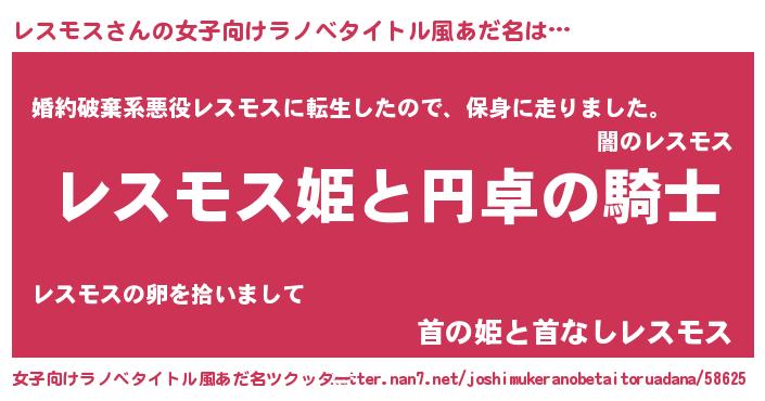 | ヒーロー風カッコイイあだ名 | 『スーパーレスモス』『炎刃騎士レス』 |