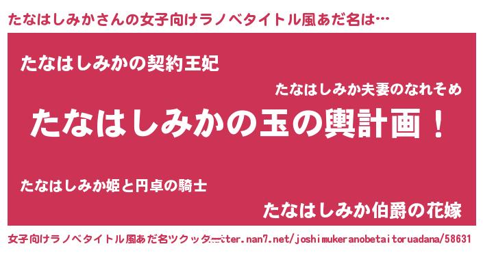| 伝説のあだ名 | 『古より伝わる吟遊詩人たなはしみか』 |