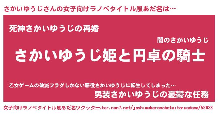 | 胡散臭い通販商品みたいなあだ名 | 『モテモテ間違いなし水晶球…その名も「さかいゆうじ」』 |