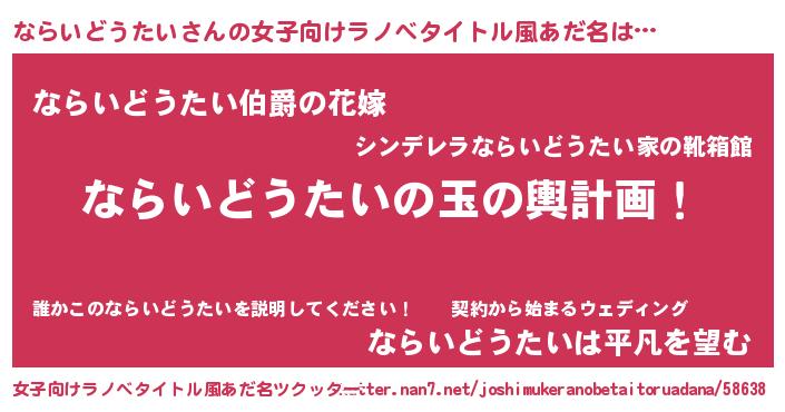 | 男性向けラノベタイトル風あだ名 | 『転生したらならいどうたいだった件』 |