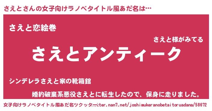 | 欧米人風あだ名 | 『ケンブリッジさえと』『ダニエルさえと』 |