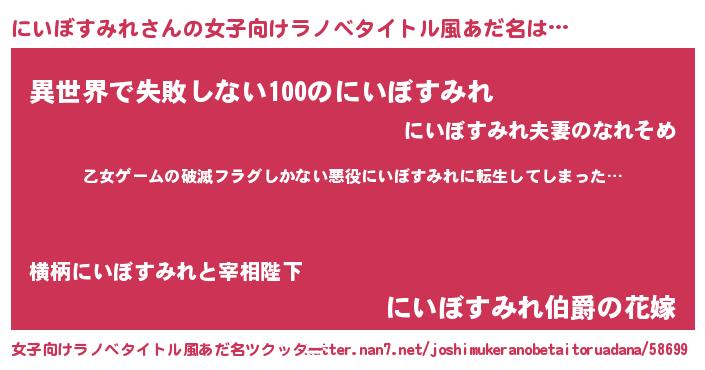 | 意味不明あだ名 | 『住所不定無職にいぼすみれ(62歳)』 |