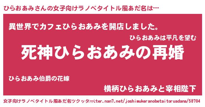 | ヘコむあだ名 | 『ひらおあみ(笑)』『ひらっちょ』 |