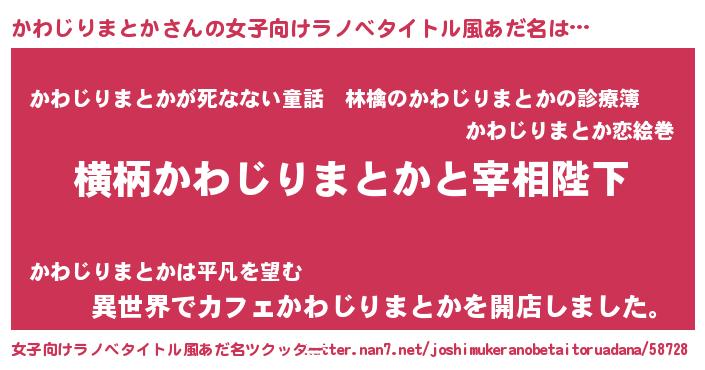 | 意味不明あだ名 | 『住所不定無職かわじりまとか(59歳)』 |