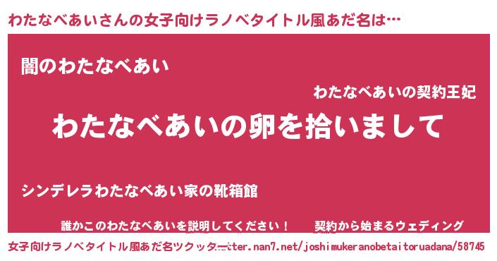 | 男性向けラノベタイトル風あだ名 | 『ダンジョンにわたなべあいを求めるのは間違っているだろうか』 |