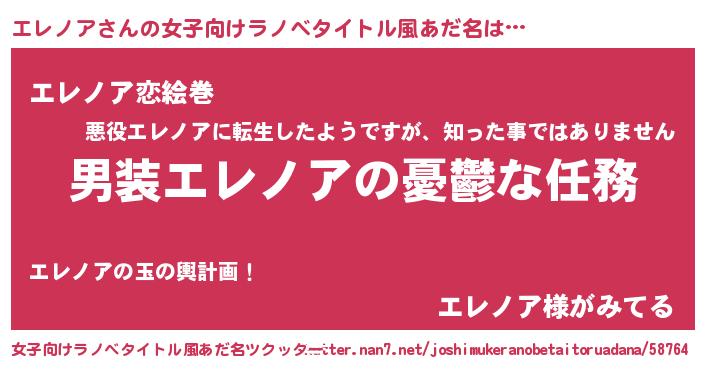 | 意味不明あだ名 | 『眠気覚ましガムエレノア味』 |