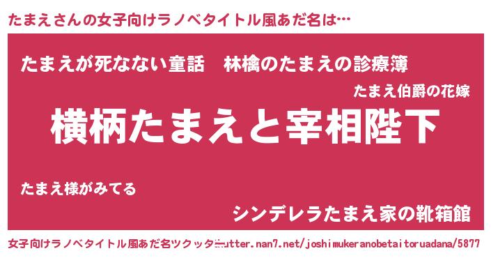 | 男性向けラノベタイトル風あだ名 | 『たまえに滅ぼされるだけの簡単なお仕事です』 |