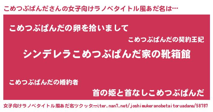 | 男性向けラノベタイトル風あだ名 | 『緋弾のコメツブパンダ』 |