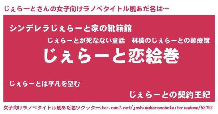 | ヘコむあだ名 | 『じぇらーと(小並感)』『じぇお』 |