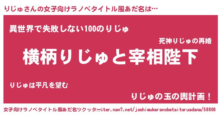 | 男性向けラノベタイトル風あだ名 | 『りじゅに滅ぼされるだけの簡単なお仕事です』 |