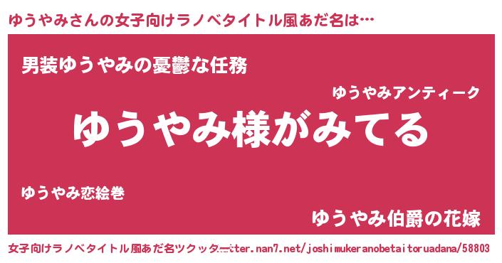 | 男性向けラノベタイトル風あだ名 | 『ゆうやみの嫁は女の子じゃないと思った?』 |