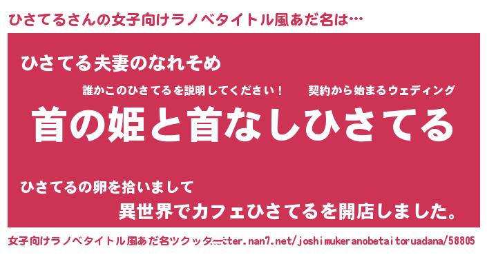 | 男性向けラノベタイトル風あだ名 | 『はたらくひさてるさま!』 |