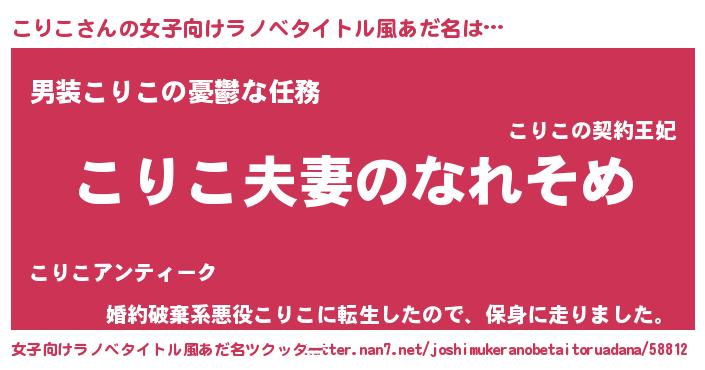 | ヒーロー風カッコイイあだ名 | 『正義の使者こりこ』『ネオコリコ』 |