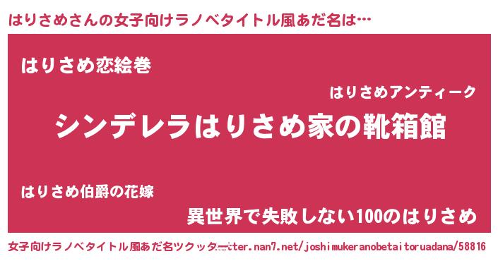 | ヘコむあだ名 | 『はりさめ(笑)』『豆乳』『はりを』 |