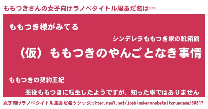 | 胡散臭い通販商品みたいなあだ名 | 『必ず成功する霊験あらたかなお札…その名も「ももつき」』 |