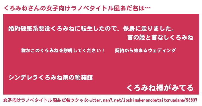 | 胡散臭い通販商品みたいなあだ名 | 『億万長者になれるブレスレット…その名も「くろみね」』 |