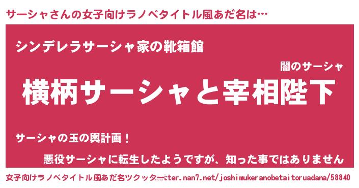 | 男性向けラノベタイトル風あだ名 | 『サーシャに滅ぼされるだけの簡単なお仕事です』 |