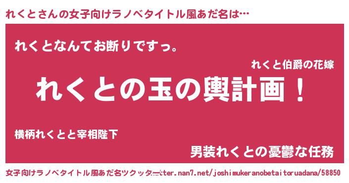 | 男性向けラノベタイトル風あだ名 | 『転生したられくとだった件』 |