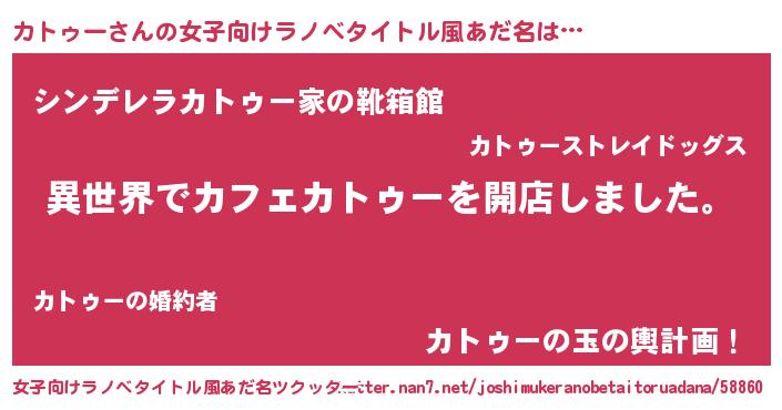 | 意味不明あだ名 | 『永久保存カトゥー』『自称カトゥー』 |