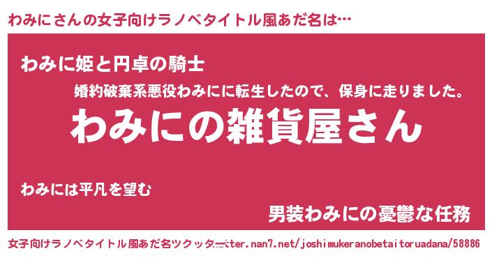 | 男性向けラノベタイトル風あだ名 | 『やはりわみにの青春ラブコメはまちがっている 』 |