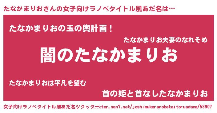 | 男性向けラノベタイトル風あだ名 | 『Re:たなかまりおから始める異世界生活』 |