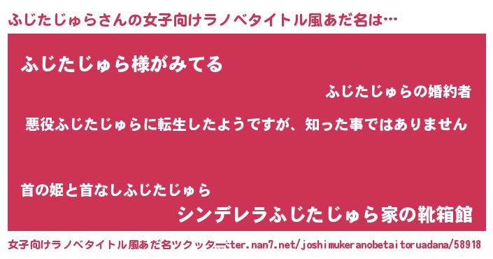 | 男性向けラノベタイトル風あだ名 | 『この素晴らしい世界にふじたじゅらを!』 |