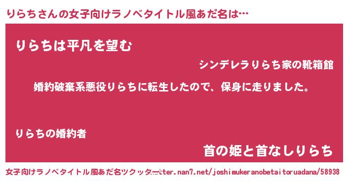 | 男性向けラノベタイトル風あだ名 | 『リラチスレイヤー』 |