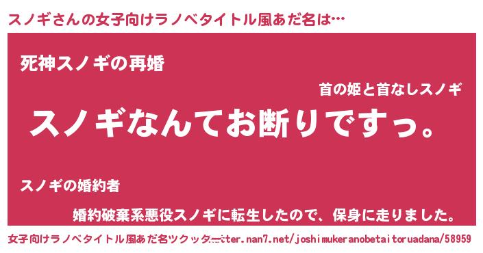 | 男性向けラノベタイトル風あだ名 | 『魔法科高校のスノギ』 |