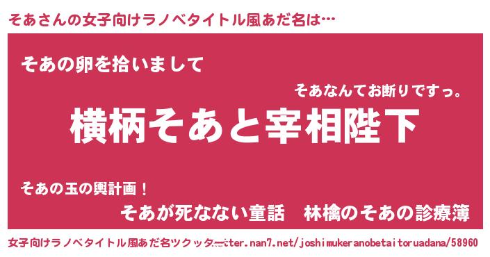 | 男性向けラノベタイトル風あだ名 | 『そあに滅ぼされるだけの簡単なお仕事です』 |
