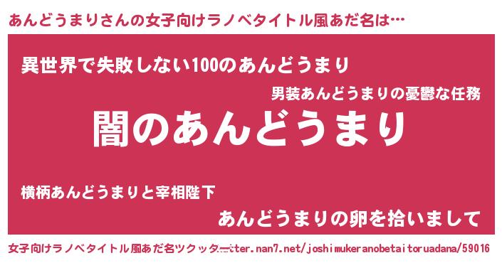 | 男性向けラノベタイトル風あだ名 | 『Re:あんどうまりから始める異世界生活』 |