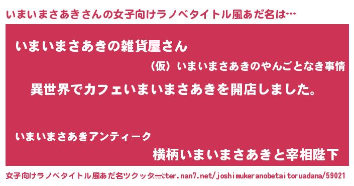 | 男性向けラノベタイトル風あだ名 | 『誰もが恐れるあのいまいまさあきが、ぼくの専属メイドになるようです。』 |