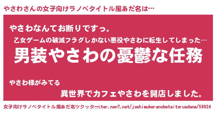 | 男性向けラノベタイトル風あだ名 | 『うちのやさわが世界を掌握している!』 |