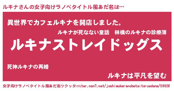 | 男性向けラノベタイトル風あだ名 | 『Re:ルキナから始める異世界生活』 |