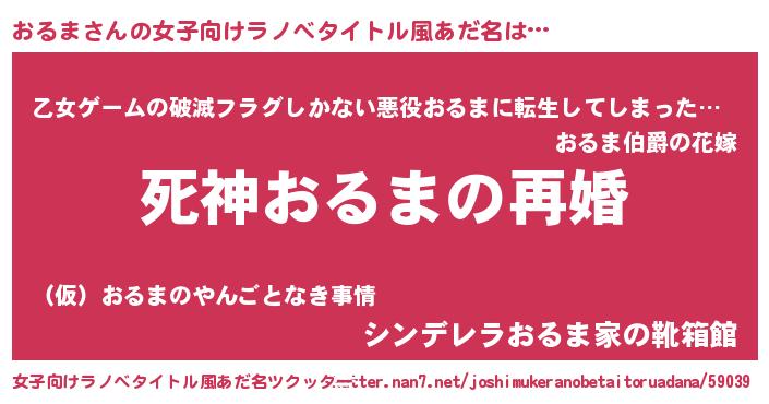 | 男性向けラノベタイトル風あだ名 | 『ノーゲーム・ノーオルマ』 |