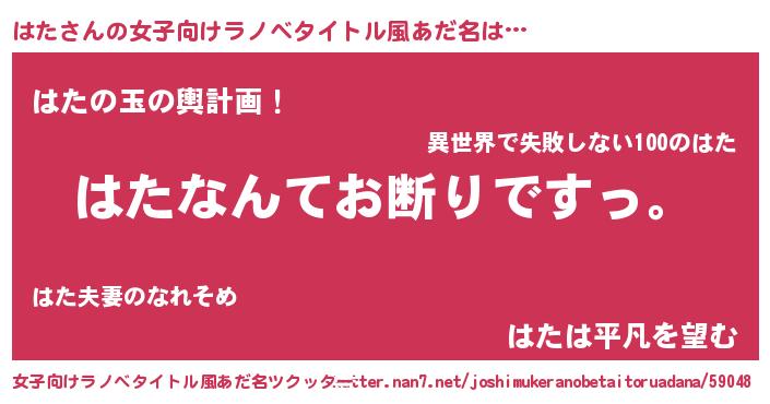 | 胡散臭い通販商品みたいなあだ名 | 『ガンによく効く高麗人参…その名も「はた」』 |