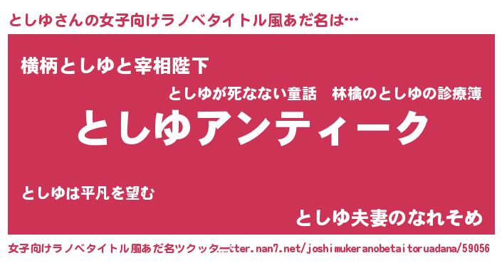| 胡散臭い通販商品みたいなあだ名 | 『テレビで話題のアガリクス…その名も「としゆ」』 |