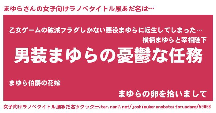 | 男性向けラノベタイトル風あだ名 | 『うちのまゆらが世界を掌握している!』 |
