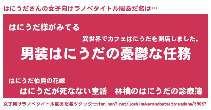 | ヘコむあだ名 | 『はに太郎』『はにうだ(爆)』 |