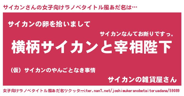 | 男性向けラノベタイトル風あだ名 | 『サイカンに滅ぼされるだけの簡単なお仕事です』 |