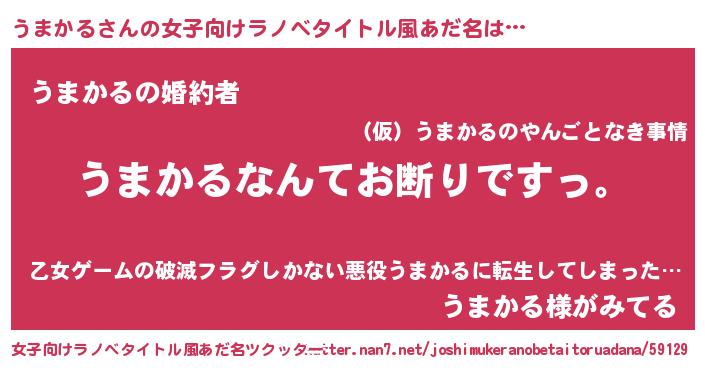 | 意味不明あだ名 | 『自称うまかる』『うまかるフォーエバー』 |